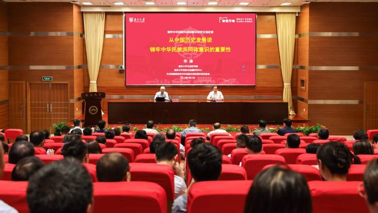 学习会邀请南京大学中央四部委铸牢中华民族共同体意识研究基地首席专家华涛为理论学习中心组成员作《从中国历史发展谈铸牢中华民族共同体意识的重要性》辅导报告,介绍了党中央近年来提出“铸牢中华民族共同体意识”这一重大战略部署的历史背景,梳理了中华民族共同体形成与发展的复杂历史进程,提出“铸牢中华民族共同体意识”的核心是“认同感”与“凝聚力”。