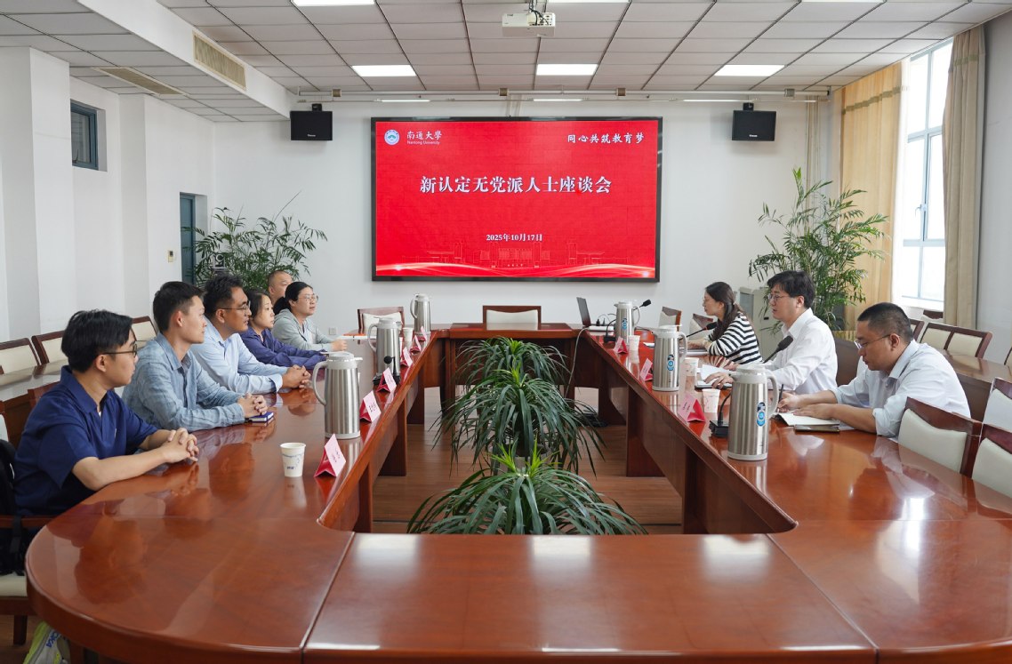10月17日,我校召开新认定无党派人士座谈会。校党委常委、统战部部长朱城主持座谈会。南通大学知联会负责人、2025年新认定无党派人士参加座谈会。