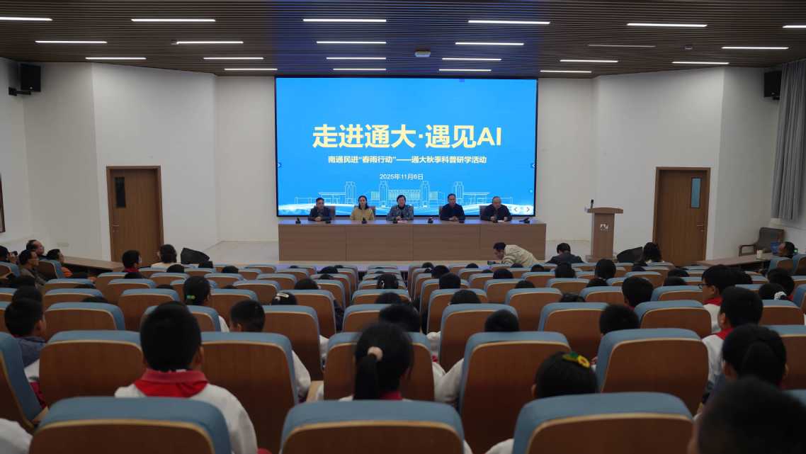 11月6日,民进南通市委会与我校联合举办的“春雨行动”秋季科普研学活动在啬园校区圆满举行。本次活动以“走进通大·遇见AI”为主题,旨在为中小学生搭建通往科学与人文的桥梁,激发青少年对高等学府及前沿科技的浓厚兴趣与热切向往。我校副校长、民进南通市委会主委陈玉娟出席活动开幕式并致辞。