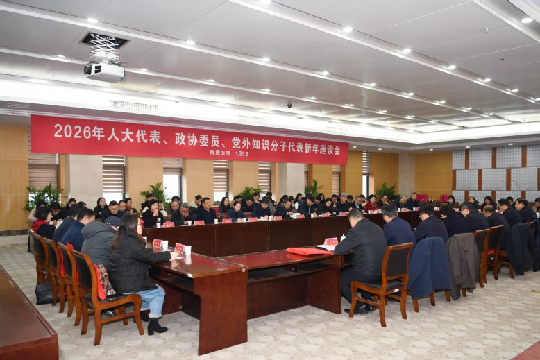 1月5日上午,我校召开人大代表、政协委员和党外知识分子代表2026年新年座谈会。校党委书记杨宇民、校长王建浦出席会议并讲话。省政协委员、南通市政协常委、民进南通市委会主委、副校长陈玉娟,全国政协委员、九三学社中央委员、九三学社省委副主委、原校长施卫东,南通市第十五届人大常委会副主任、第十三届市政协原副主席、原副校长董正超,全国人大代表、南通市第十三届、十四届人大常委会副主任、附属医院临床首席专家刘璠,校党委常委、组织部部长吴如高,党委常委、宣传部部长、统战部部长朱城等出席座谈会。会议由校党委副书记王卫东主持。