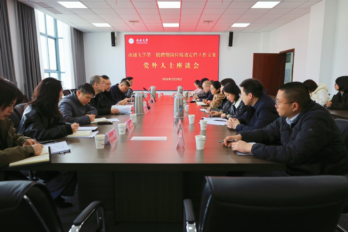 3月20日,我校召开党外人士座谈会,就《南通大学第三轮聘期岗位绩效定档工作方案(第三次征求意见稿)》听取各民主党派成员和无党派人士代表的意见建议。校党委常委、副校长华亮出席座谈会并讲话。